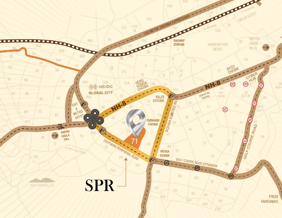 Sector 71, located along the Southern Peripheral Road (SPR), is one of Gurgaon’s most promising residential destinations. Its connectivity to Golf Course Extension Road, Sohna Road, and NH-48 positions it as a prime investment corridor. The area is surrounded by reputed schools, hospitals, retail complexes, and entertainment avenues.