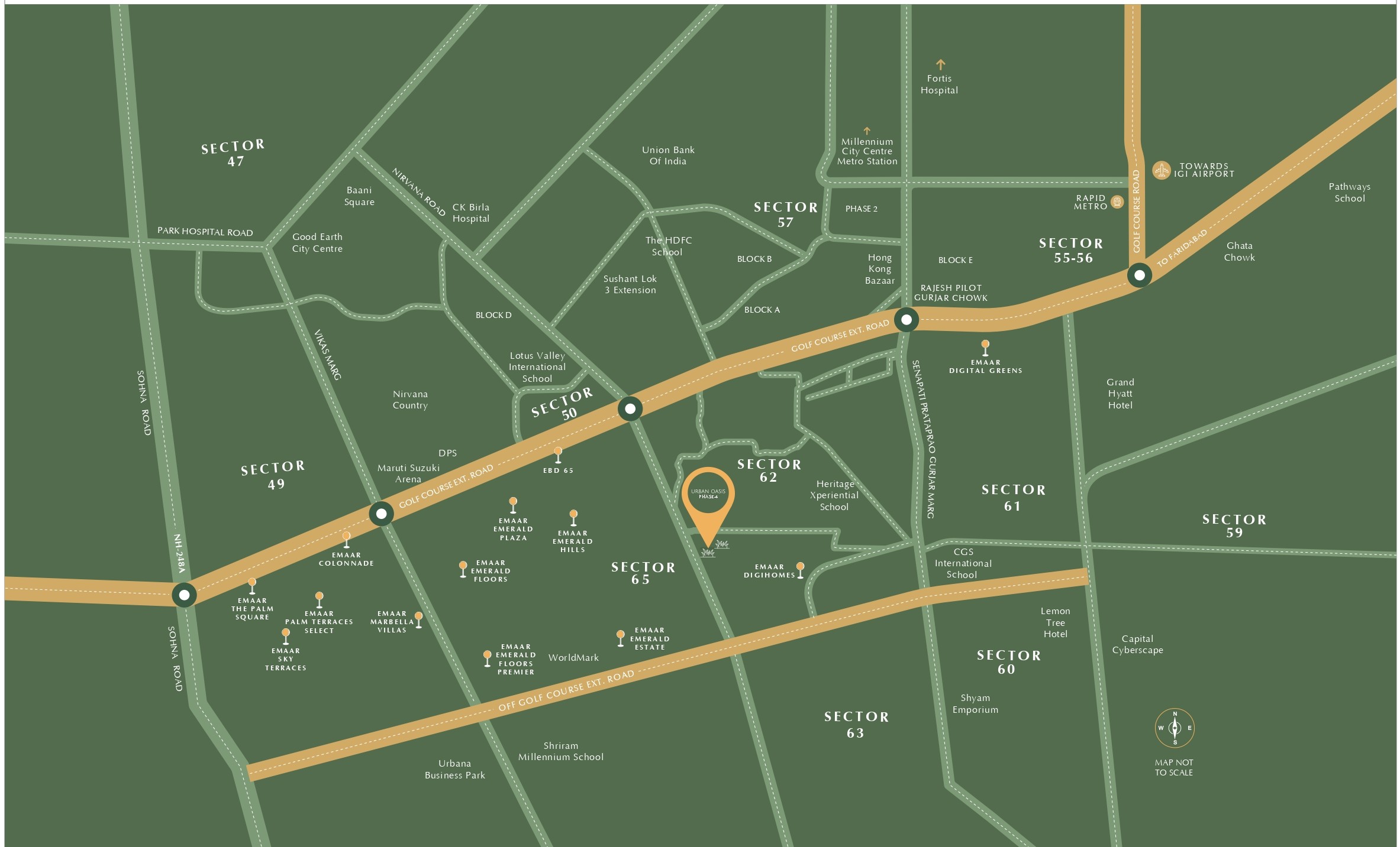 Emaar Sector 86 enjoys excellent connectivity to Golf Course Extension Road, NH-48, and upcoming metro stations, offering easy access to Delhi and major business hubs.