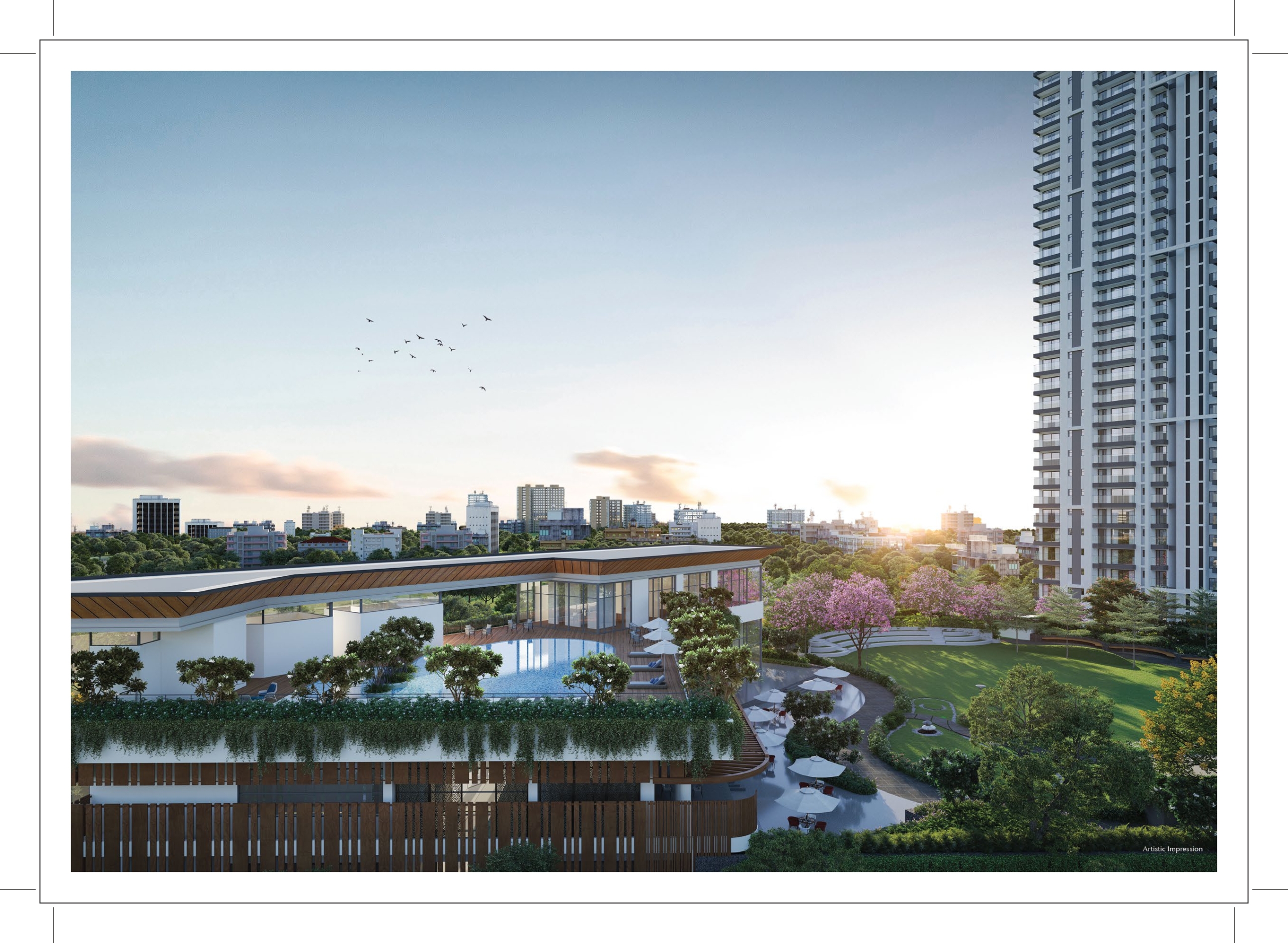 Urban Ascent images showcasing elegant interiors, lush landscaping, clubhouse, swimming pool, and exterior views.