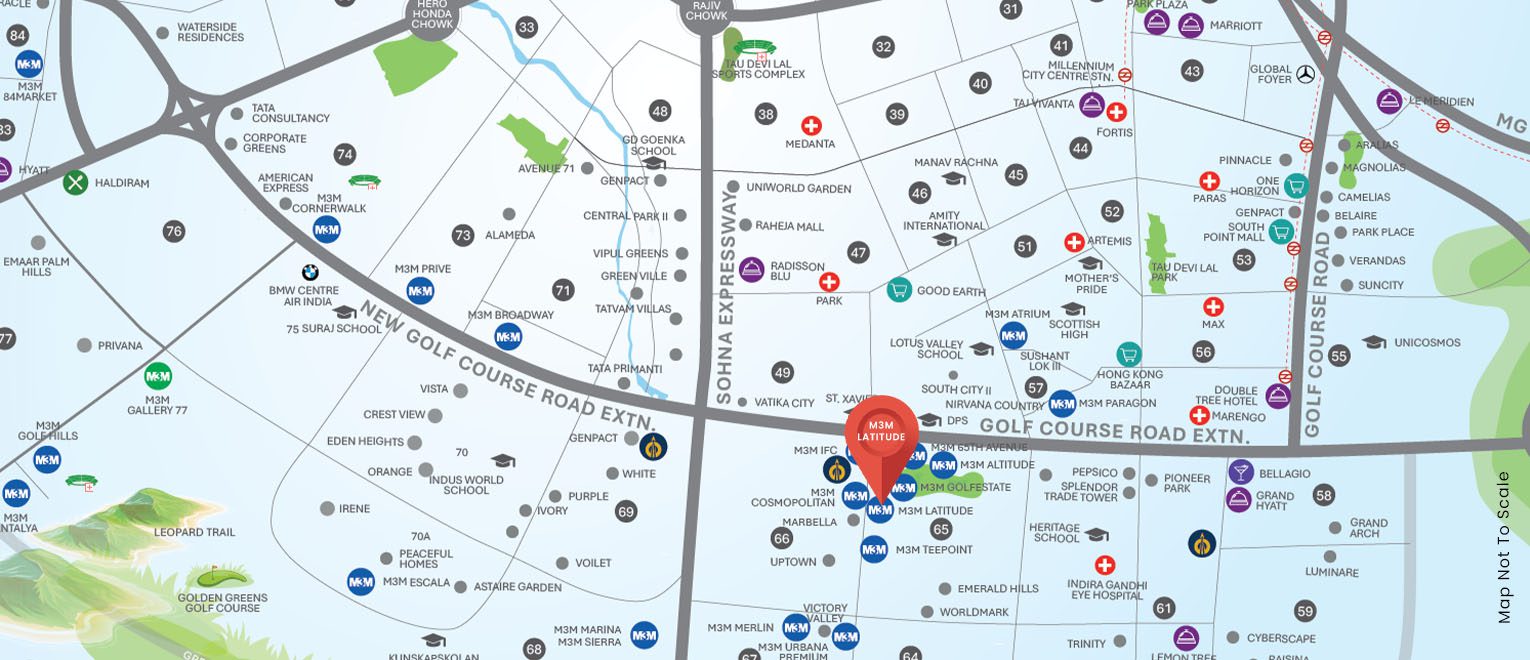 M3M Altitude Gurgaon is strategically located in Sector 65 on Golf Course Extension Road. The project ensures seamless connectivity to Sohna Road, NH-8, IGI Airport, and other prime areas of Delhi NCR.