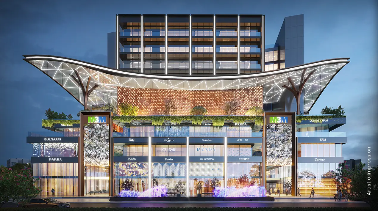 M3M Jewel covers a prime area with extensive frontage, maximizing visibility and accessibility for high-end brands.