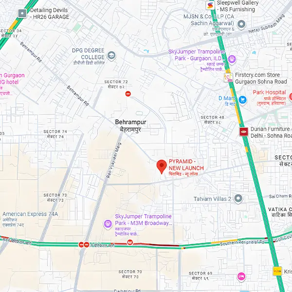 Pyramid Sector 85 is located in Sector 85 Gurgaon, a growing residential hub with strong connectivity to major roads, commercial centers, and essential facilities, making it convenient for daily commuting.