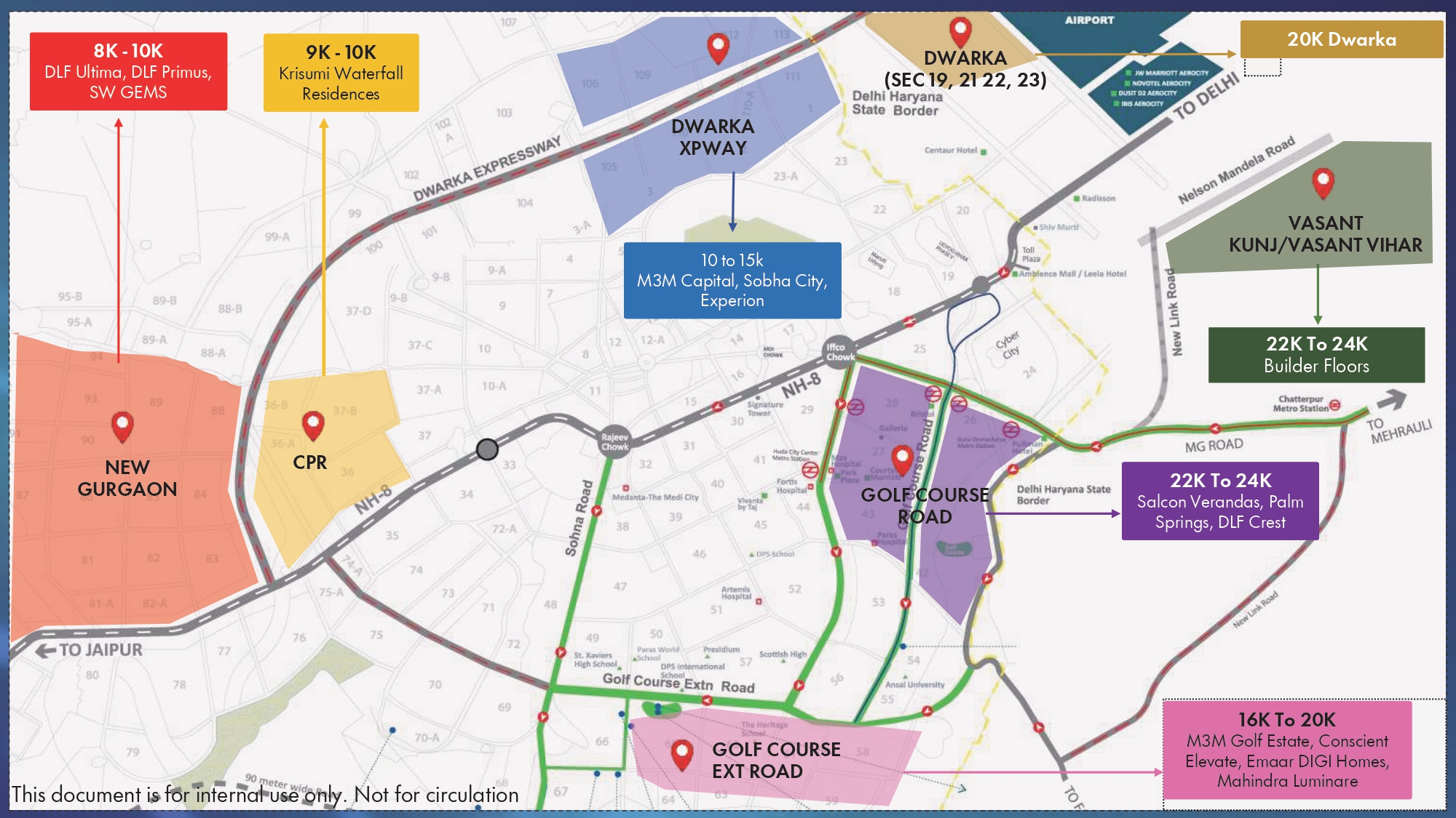 It’s located at the Delhi-Gurgaon border – literally 0 km from Delhi – ensuring easy access to Central Delhi and NCR via Dwarka Expressway.